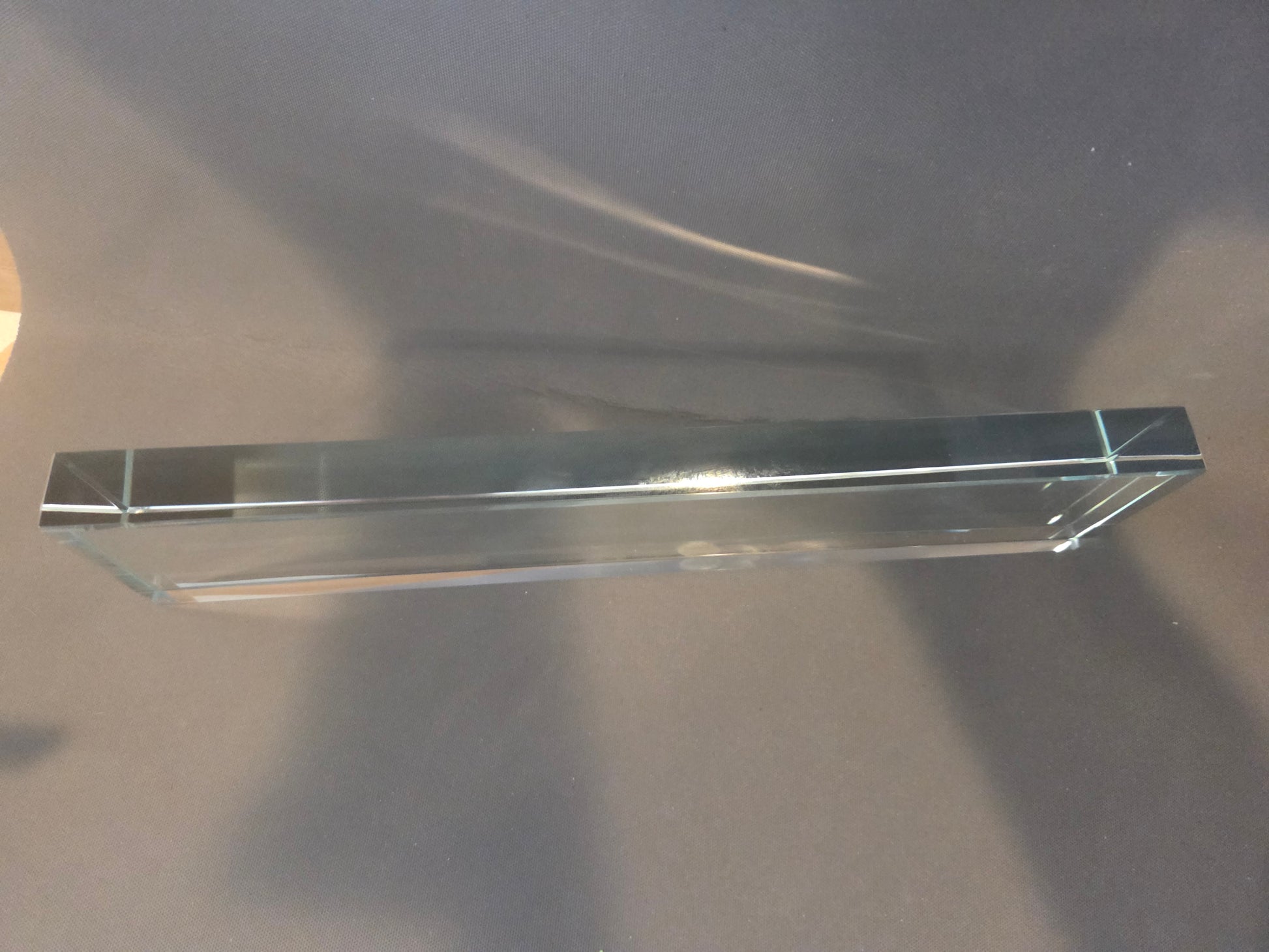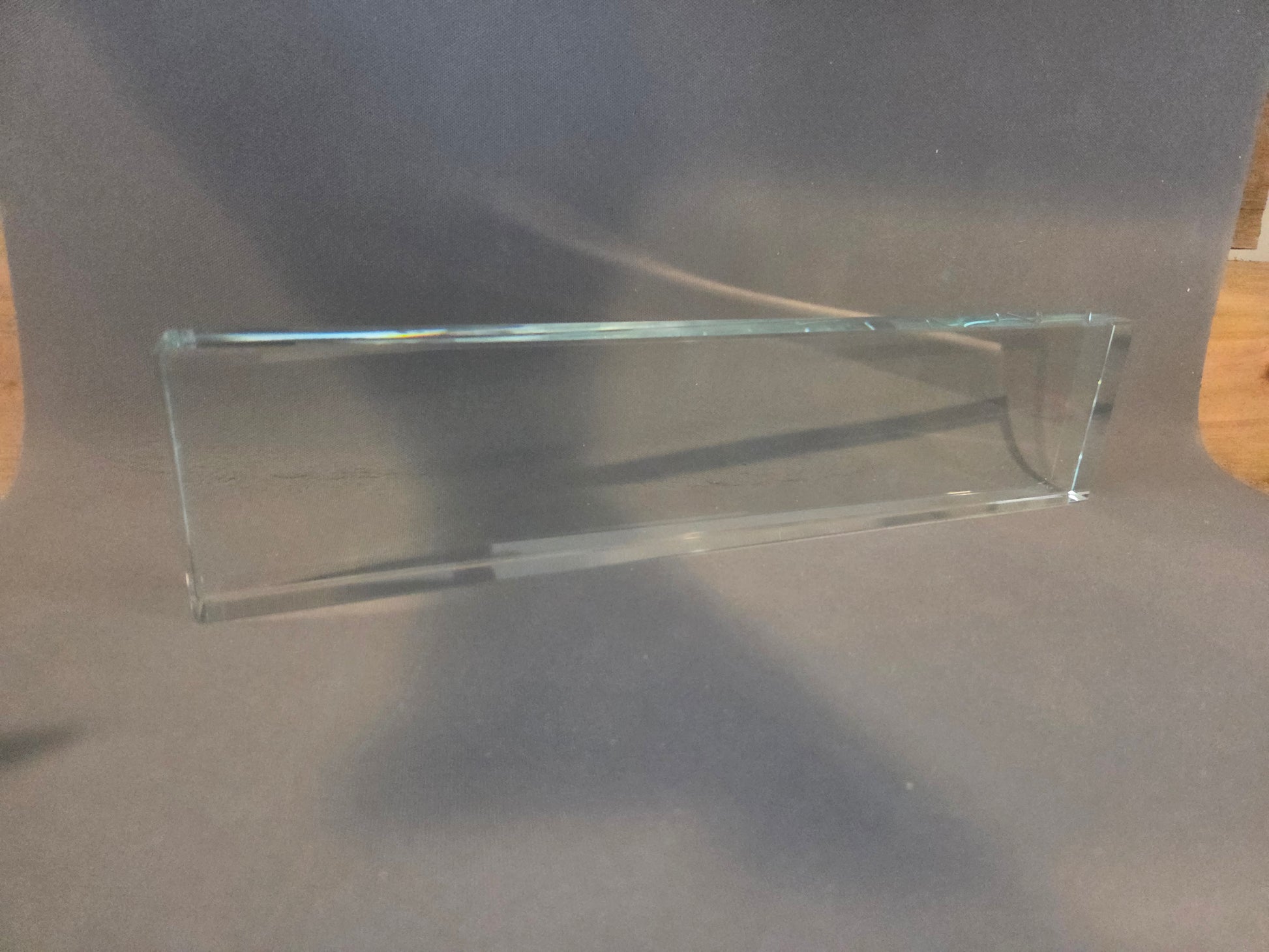 Make a statement with this stunning crystal desk name plate, expertly crafted to the dimensions of 10.5 x 2.35 x .75 inches, adding a touch of sophistication to your workspace.