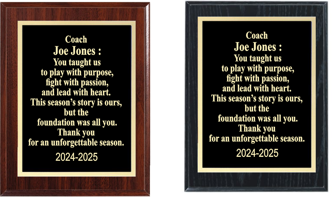This engraved 7x9 wooden plaque features a high-quality brass plate, available in either black or cherry finish. Expertly crafted, it offers a timeless and elegant way to display awards, recognitions, or personalized messages with lasting durability and refined style. Perfect for professional environments or special presentations.